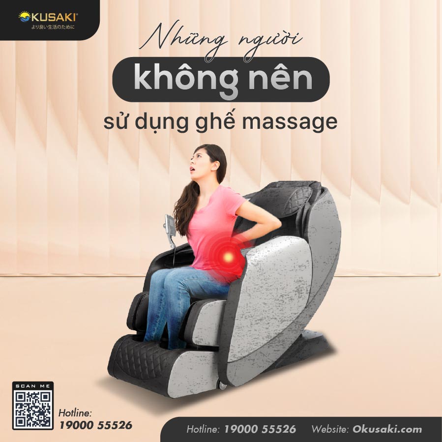 - Người đang gặp chấn thương nặng về xương khớp, gân cốt nên tuân thủ hướng dẫn của bác sĩ và hạn chế sử dụng ghế massage.
